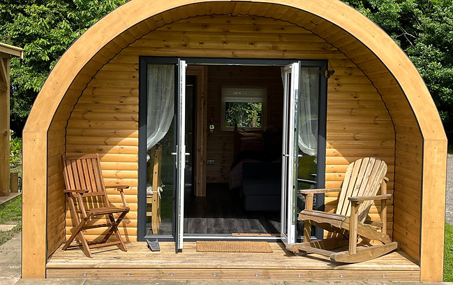 Spacious glamping pod with hot tub. Bee Hive contains a kitchenette inc, fridge, microwave, cooking hob, kettle, dining area, large corner sofa for watching the 32 inch TV, double bed, ensuite inc, flushable toilet, shower and vanity unit.